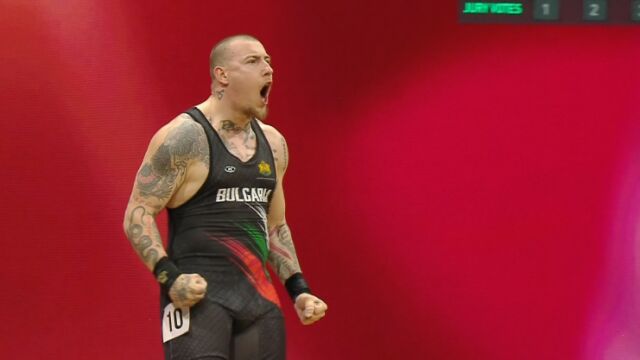 Варненецът взе сребро в изхвърлянето със 190 кг, а след това се справи с 222 за бронз в изтласкването, за да събере двубой от 412.
