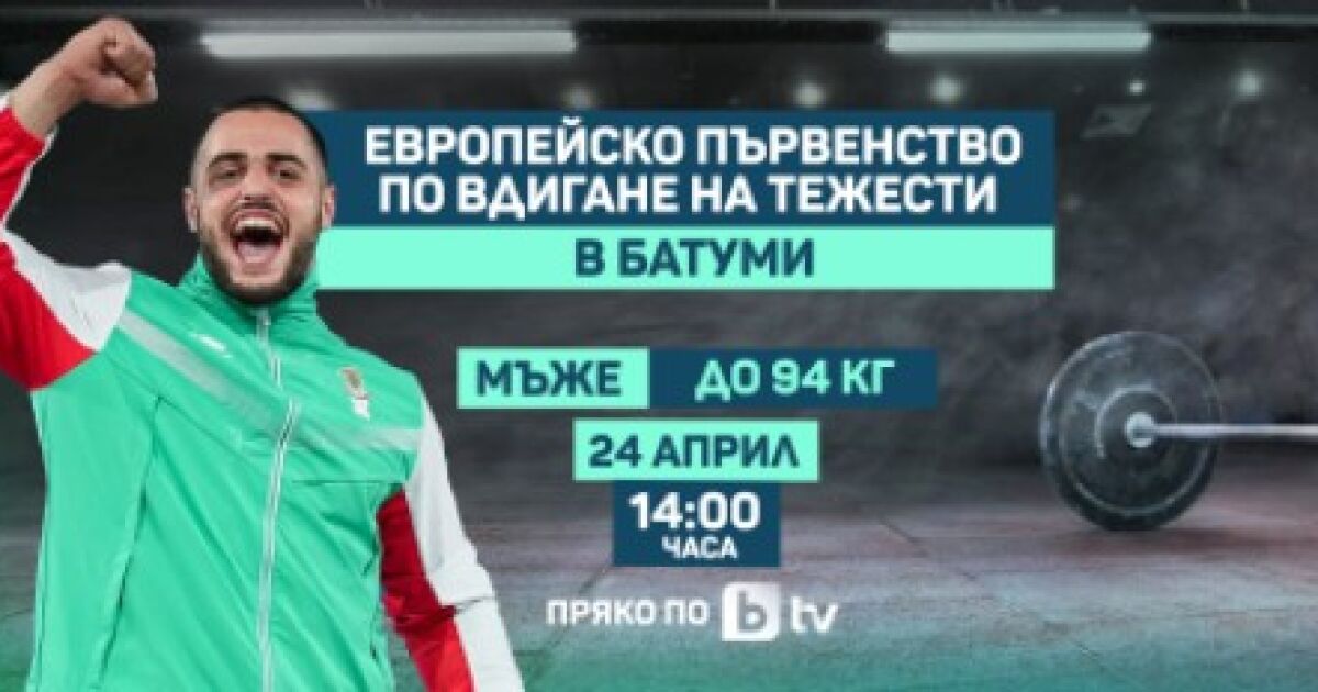 Припомняме, че надпреварата за европейското злато в категория до 94 килограма при мъжете с участието на олимпийския ни шампион ще можете да гледате на 24 април от 15:00 ч. пряко по bTV. Час по-рано започва и нашето специално студио.