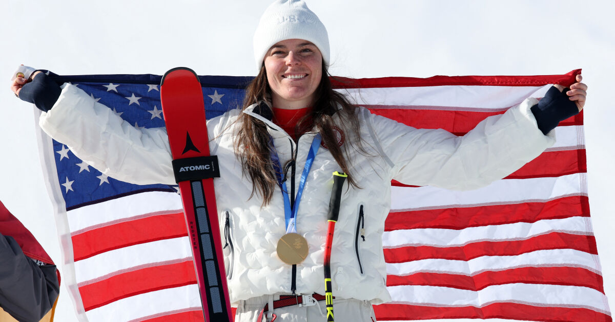 @tntsports Breezy Johnson has already broken her medal after taking gold in the Women’s Downhill #milanocortina2026 #winterolympics #breezy #breezyjohnson ♬ original sound - TNT Sports
