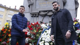 Играчите на "сините" поднесоха венци и цветя