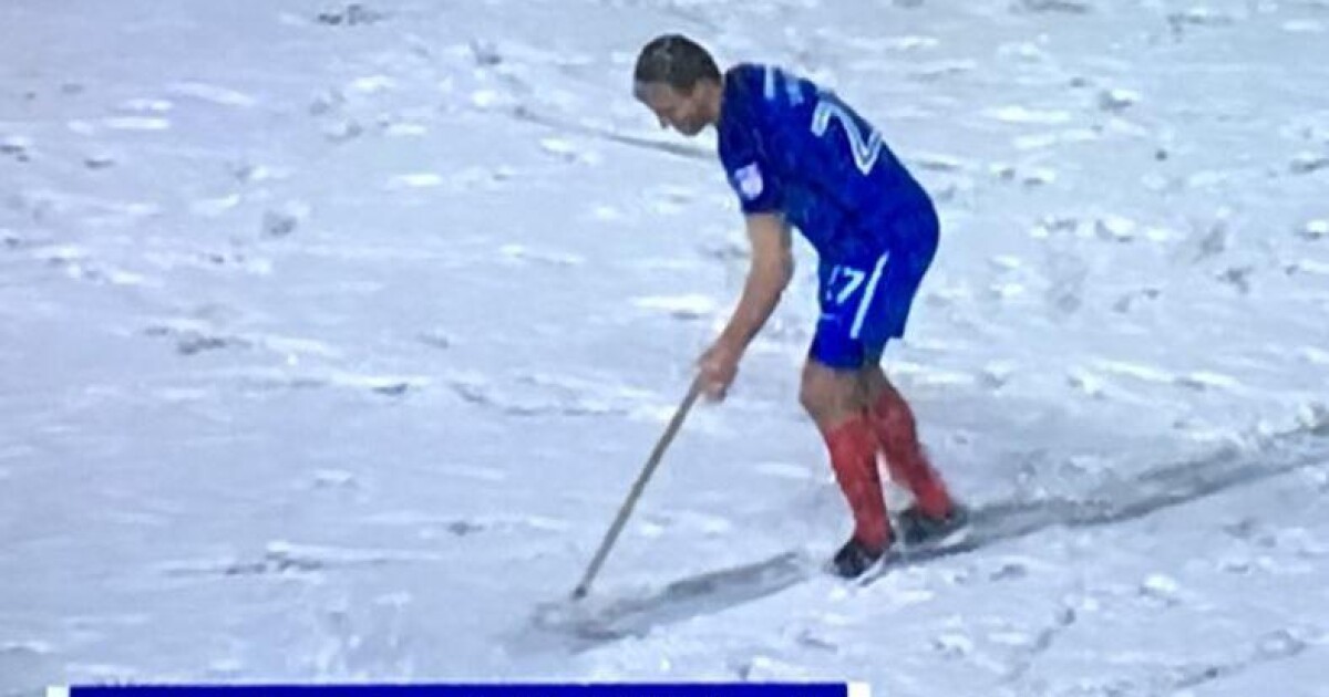 Арбитърът помоли футболистите да изчистят снега. По това време домакините имаха аванс от 2:1, което ги превърна и в по-активни с лопата в ръка.