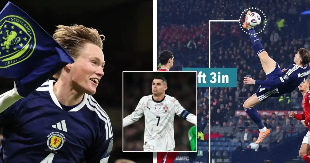 Падна 7-годишен рекорд на Кристиано Роналдо! Шотландецът Скот Мактоминей подобри с 13 сантиметра постижението на португалската звезда за най-високо изпълнена задна ножица, след виртуозното си попадение срещу Дания.